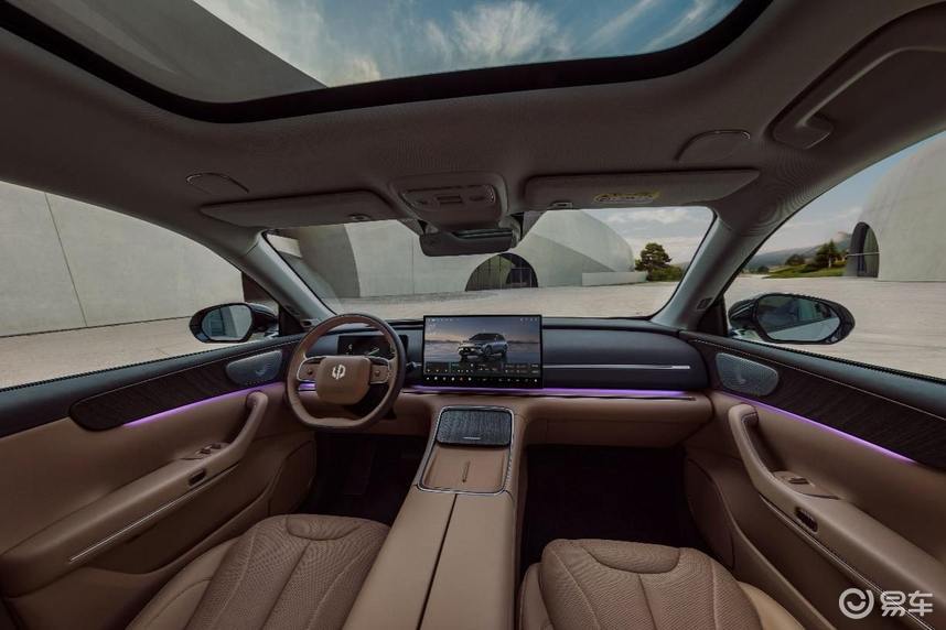 中控区域升级为同级最大17.3英寸悬浮式超清屏,领先同级Model Y、小鹏G7等一众车型,2.8K分辨率与6mm超窄边框带来沉浸式视觉体验。下方16.3L超大镂空储物空间嵌入柔光照明灯,兼顾实用性与仪式感。环绕式256色瀑布流光氛围灯可随音乐律动变换,配合贯穿式电动隐藏出风口与智能香氛系统,构建起“视、听、触、嗅”四维感官空间。