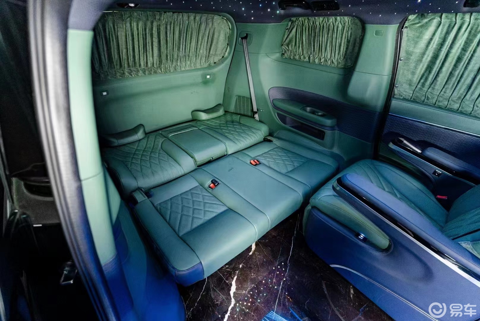 三、后排航空座椅 —— 舒适与功能天花板原车座椅升级!后排航空座椅 带电动调节、加热通风、按摩功能,长途出行 “一键躺平” 祖母绿真皮与车身配色呼应,菱形缝线细节拉满,既显商务气场,又能让家人舒适 “瘫坐”,实用与颜值双在线。