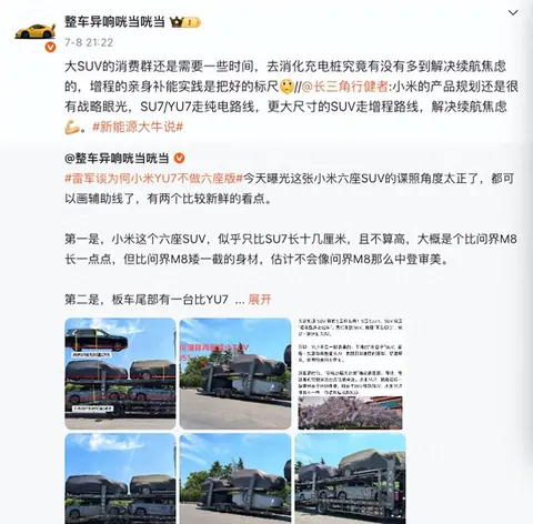 最近网上又有人拍到小米新车的照片,说是曝光了两台全新车型。一台是传说中的增程式SUV,另一台看起来像是两厢小车。这玩意儿刚放出来,评论区就炸了锅。本来大家还在纠结买SU7还是YU7呢,这下可好,小米又整出新活儿来。