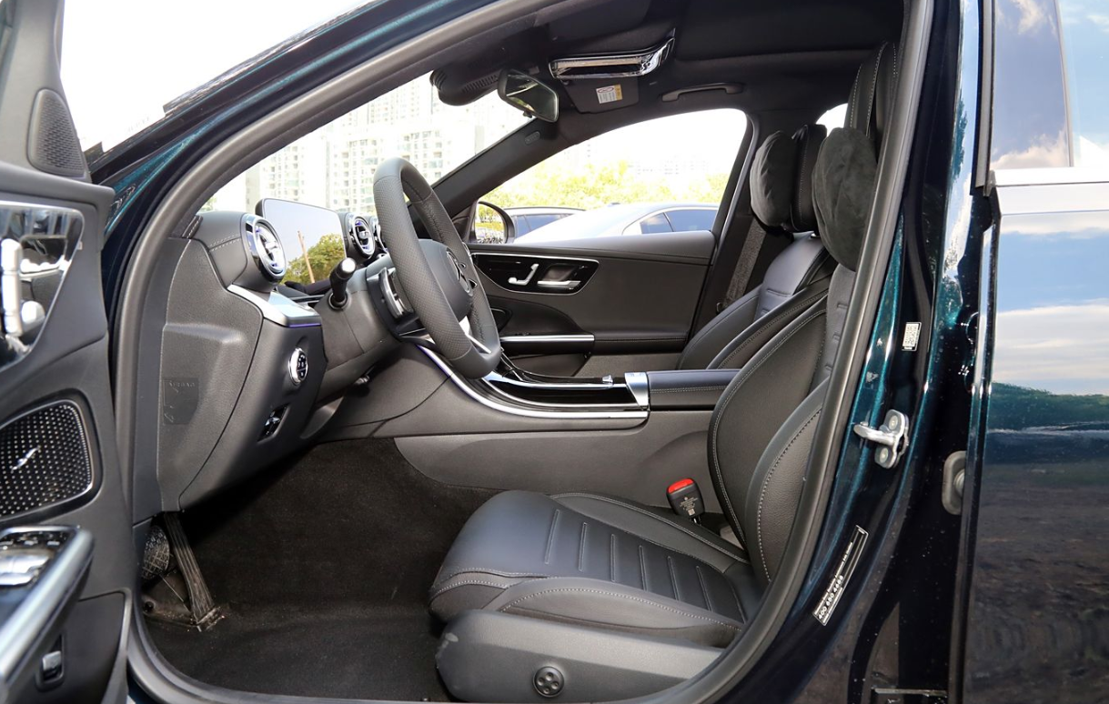 空间方面,对于身高约1.85米的乘客,进入宝马3系的驾驶座,调整好座椅位置后,头部空间大约可剩余一拳左右的距离,视野开阔,不会有压抑感。而在奔驰C级的前排,同样身高的乘客头部空间约有四指,虽然稍显紧凑,但也能保证舒适的驾乘体验。