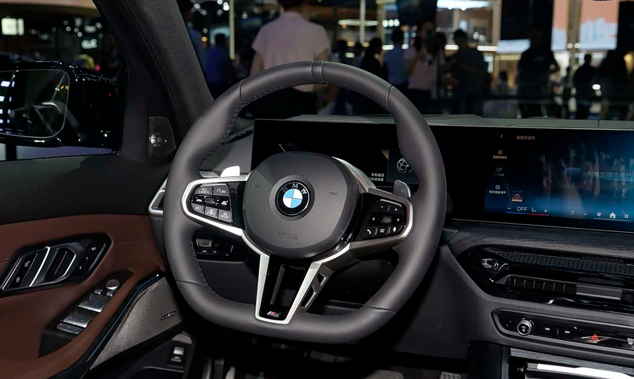 宝马3系的内饰采用以驾驶者为中心的设计理念,非对称式布局,中控台明显向驾驶员一侧倾斜,方便驾驶者在行车过程中操作各种按键与旋钮。简洁现代的设计风格,搭配全液晶仪表盘、大尺寸中控显示屏以及精致的电子换挡杆,营造出强烈的科技感,同时又不失实用性。车内采用了大量软性材质和皮质包裹,触感舒适,缝线工艺精致,展现了宝马对于品质的追求。M运动型多功能真皮方向盘握感舒适,进一步提升了驾驶者的操控体验。