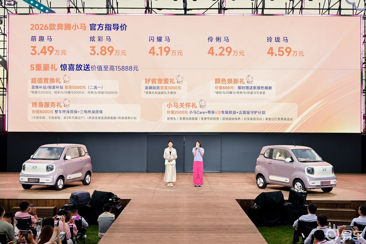 定位于“潮趣萌宠”,奔腾小马拥有六好优势,是大厂造小车的品质标杆,成为用户日常通勤、姐妹聚会、逛街遛娃的“六边形全能生活搭子”,其上市以来受到许多潮流宝妈和时尚女生的喜爱,车主中有43% 为女性用户,超过一半的男性车主更将奔腾小马作为“宠妻神器”,送给妻子/女友。高品质美好生活是TA们共同的向往,为了进一步提升广大“萌友”们的出行体验,2026款奔腾小马焕彩升级再塑精致。