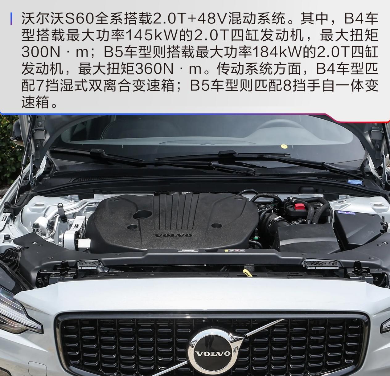 汽油+48V混动系统发动机采用轻量化技术,减重的同时还能提升效率,中置缸内燃油直喷技术让汽油的雾化效果更好,动力更强、燃烧更充分,进而带来更好的动力表现以及能耗表现。此外,还有VVT连续可变气门正时技术以及模块化尾气处理系统,保证动力的同时还能降低排放。整体来说,沃尔沃S60更像一位“均衡大师”,既能满足年轻人对驾驶激情的追求,又能兼顾家庭用车的舒适性。