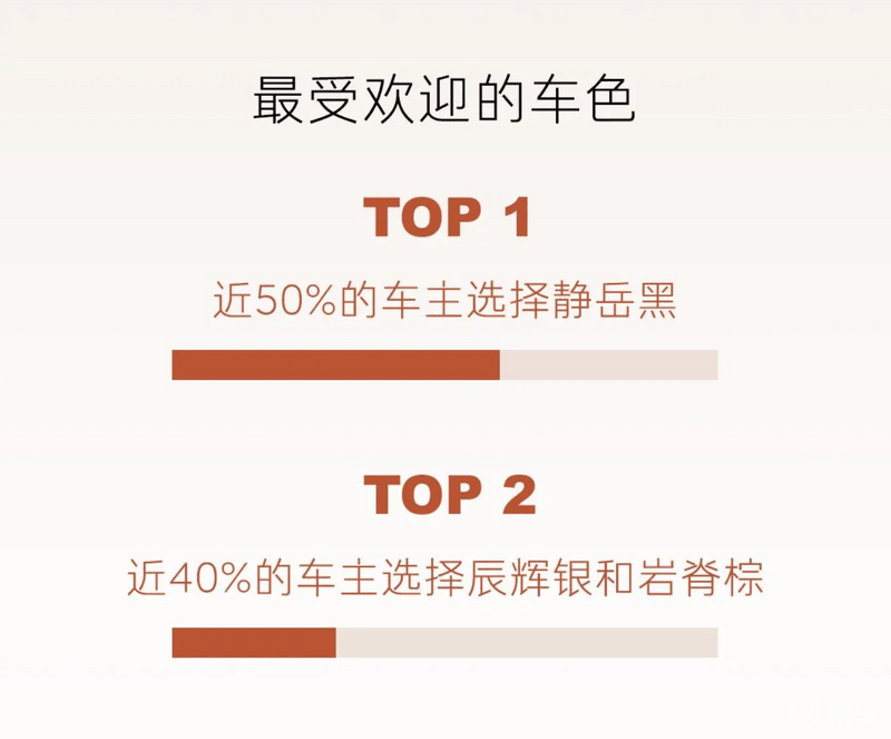 四分之三的用户选择21英寸光晖多幅轮圈;静岳黑、辰辉银、岩脊棕是人气最高的三个颜色;月榕棕、云缦米是最受欢迎的内饰色;8成用户选择了展翼电动踏板;超7成用户选择了BaaS电池租用购买方式。