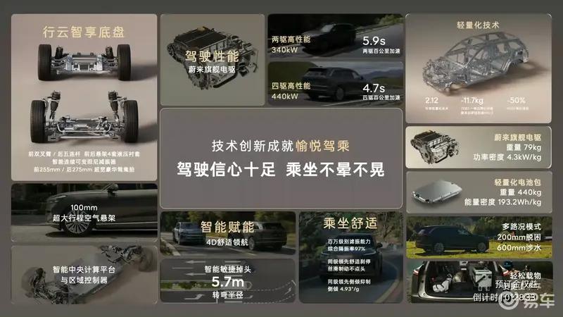 乐道L90标配全向高精度感知硬件,高性能感知硬件,7个800万像素高清摄像头以及4D毫米波成像雷达,可以支持城市领航、高速领航等多种辅助驾驶功能。此外,2025年乐道所有车型都将搭载乐道OSD端到端全场景智能辅助驾驶。此外,蔚来端到端NOA已经在大范围测试中,未来全场景NOA领航辅助全国可用。
