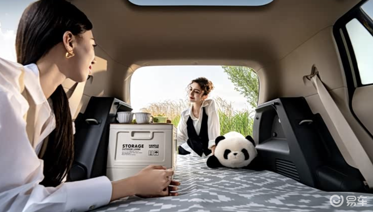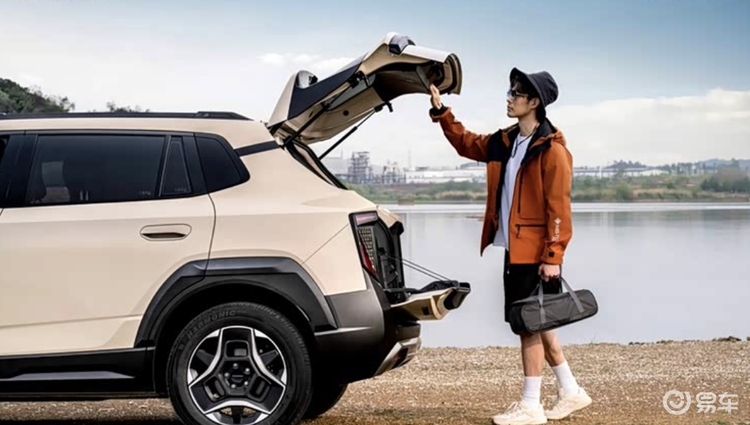 2715mm轴距让纳米06的空间表现远超同级,后排腿部空间达953mm,可轻松容纳儿童座椅或三名成年人。独创的“天地门”设计更是点睛之笔:上段电动尾门开口高度1.85米,方便高个子取物;下段地门外翻后形成承重150kg的平台,露营时可直接作为操作台或餐桌。后备厢常规容积500L,放倒后排后扩展至1040L,能装下9个行李箱或婴儿车、露营装备。对比元UP的350L后备厢,东风纳米06的实用性堪称碾压。