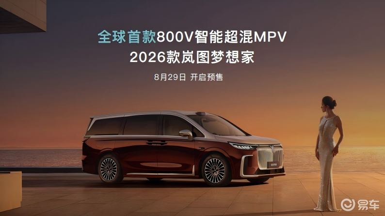 2026款岚图梦想家:全球首款800V智能超混MPV,8月29日开启预售;