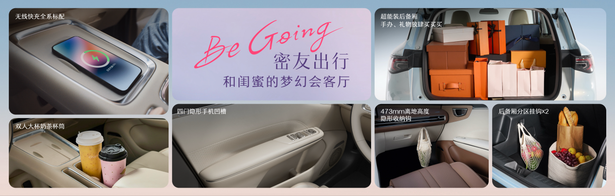 而且为了方便车上的乘客,缤果S还在全车设计了25处人性化储物空间,咖啡、手机、随身小包等可以随手取放;车内还有50W风冷无线手机充电装置,对“手机党”来说,堪称福音配置。前排配备双人奶茶杯筒,深浅搭配奶茶杯“不打架”,人手一杯“快乐水”;前排隐形手机凹槽、多处收纳挂钩等细节配置,手机、外卖袋等小物件都有容身之所。