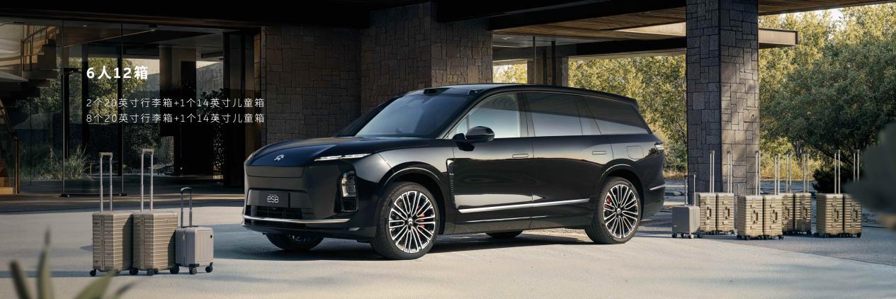 储物空间更显越级实力。坐满六人情况下,全新 ES8 具有 777L 装载能力,储物得体有度。同级最大的 230L 感应式电动前备舱可轻松放下 2 个 20 寸行李箱及 1 个 14 寸儿童行李箱;同级最大的 547L 后备箱可容纳 8 个 20 寸行李箱加 1 个 14 寸儿童行李箱,并配有同级最大 132L 超大下层储物空间,轻松实现「6 人 12 箱」的储物能力。