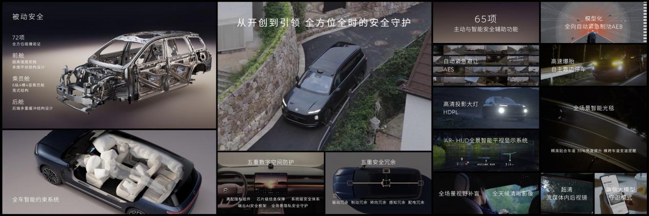 全新 ES8 为车内每位驾乘人员提供最周全的保护。超过行业标准的 72 项全方位碰撞验证,实现超越全球五星安全标准的安全性能。6 纵 10 横 8 竖乘员舱笼式结构,全向守护乘员和电池安全,全方位约束系统,配备同级最多的 11 个安全气囊,为每位乘客提供全面安全防护。蔚来首创的主驾智能约束系统,可以判断驾驶员身材和位置,自适应调整安全带和气囊,对不同身材的驾驶员实现更精准的保护。在第二排开发了同级唯一的大躺姿全向安全系统,包含同级唯一的双坐垫安全气囊,结合双座椅集成式安全带,超高强度座椅骨架和坐垫骨架溃缩吸能装置,有效降低大角度躺姿下的安全风险。