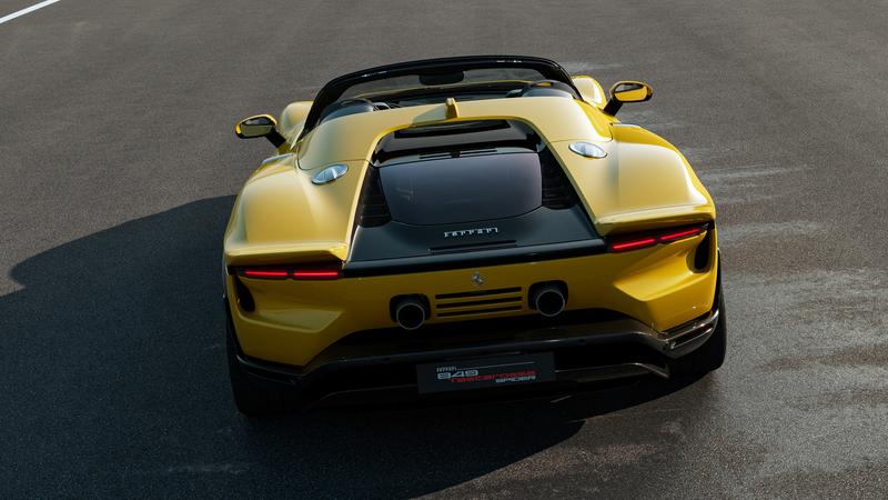 新车尾部采用了源自法拉利512 S的双尾翼结构,两个扰流板(即双尾翼)利用流经充满肌肉感的后轮拱罩顶部的强大气流,为车尾提供了10%的下压力。