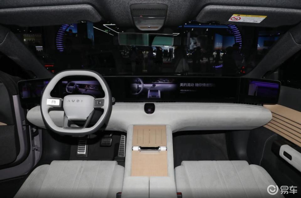 打开车门,奥迪 E5 Sportback 采用全新 AUDI OS 操作系统,硬件上搭载高通骁龙 8295 芯片,保障了系统运行的流畅性,同时车内配备贯穿式超清广域屏,由液晶仪表屏、中控屏、副驾娱乐屏组成一体式联屏,搭配两侧流媒体外后视镜显示屏,构建出极具科技氛围的座舱,在多屏联动和连续语音交互的支持下,科技感十足,同时日常使用也很便捷。