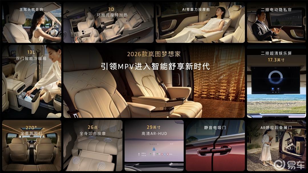 9月15日2026款岚图梦想家上市,继续提供鲲鹏和乾崑两大智能化系列,五大配置版型,以及提供PHEV和EV两种动力模式,官方指导价格为32.99万-43.99万。新车上市即交付。