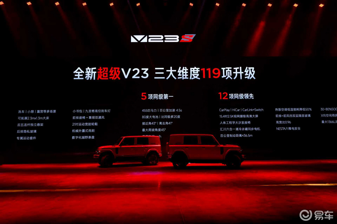 V23自上市以来,凭借极致风格风靡市场,一举成为2025年1-8月新能源方盒子累计销量冠军。全新超级V23更进一步,围绕“超级性能、超级操控、超级越野”等核心维度进行脱胎换骨全面进化,以超级产品极致价值,满足用户极致乐趣。