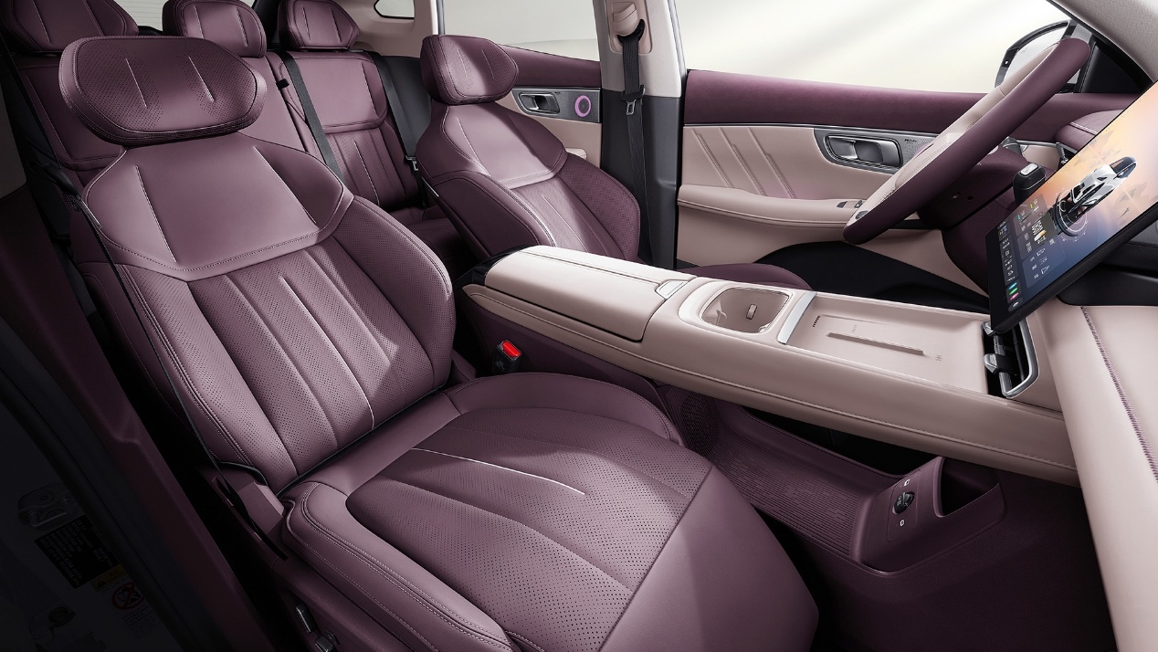 虽然外观运动活力,内在也兼顾豪华与舒适。在乘坐方面,全新深蓝S07采用高级环保皮质座椅,比仿皮和真皮在环保以及亲肤程度上都要更好一些,而且它的主驾电动调节也有16向,副驾更是夸张的达到了14项。这个前排双零重力按摩座椅可是它的核心优势之一,具备加热通风按摩,还有腿托。猜猜看,如果你有个女朋友或者有个老婆,那么当你下班接她的时候,躺在这里一天的疲劳会缓解不少。全新深蓝S07为了营造这种更有质感的内饰氛围,全车足足用了近10.7平米的软质包裹,比很多豪华车还高,仪表盘和上门板更是有超纤绒感麂皮包覆,手一摸就知道这是把钱花在刀刃上了。另外这个内饰颜色也增加了新的选择,这就是暮烟紫颜色,素雅高级。