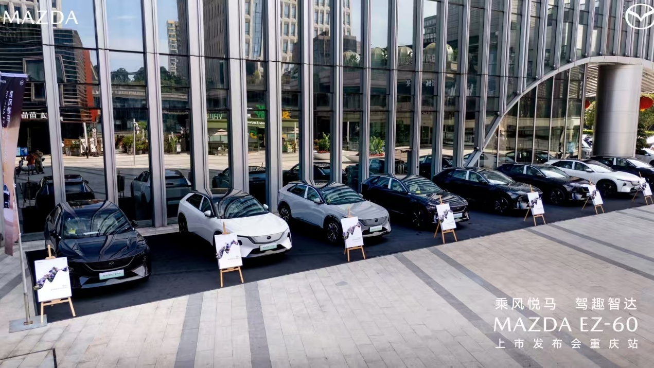 EZ-60的性价比优势不止于价格,更体现在全维度的产品力输出。设计上,新车延续马自达魂动美学基因,60mm深度的"立体光雕标志之翼"灯带内置72颗灯珠,星云紫等车漆采用"湿碰湿"三层喷涂工艺,随角异色性达23.7,质感媲美豪华车型。同级首创的9组贯穿式风道设计,不仅使风阻减少60.8counts、CLTC续航提升41km,更将高速风噪优化4dB(A),完美适配重庆多隧道、多坡道的路况特点。