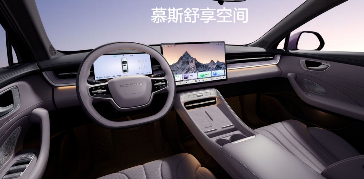 进入车内,两款车的差异化定位更加明显。荣威M7 DMH采用了大量软质皮革包覆,配合精心调校的色彩搭配和细腻的缝线工艺,营造出温馨舒适的座舱氛围。此外,一键大躺和全景沙发躺椅的灵活构造,展现了“移动起居室”的设计理念,将家庭用车的舒适性提升到了新的高度。