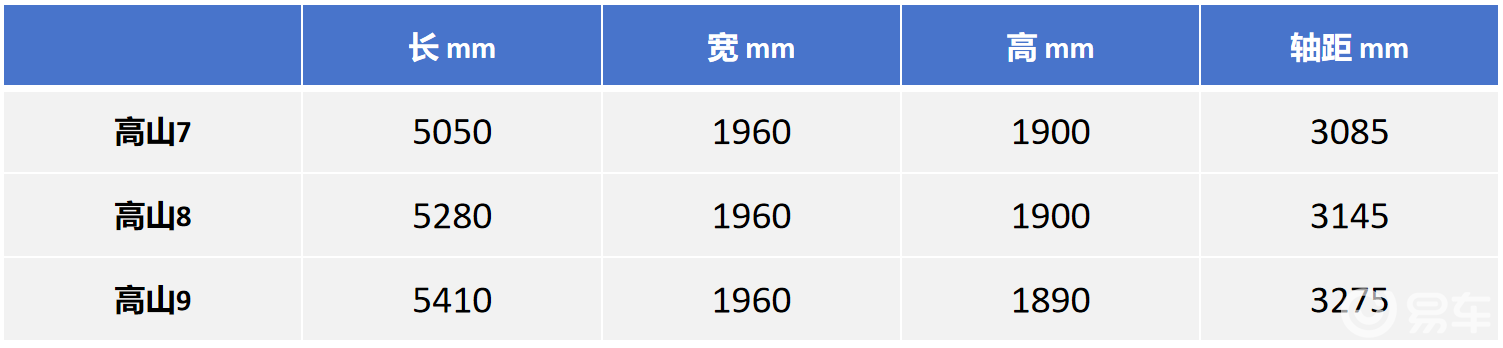 除了体型,高山7、8、9三款车配置差异不大,发动机型号和变速箱均相同,高山7和高山8采用蜂巢能源三元锂电池,而高山9采用宁德时代电芯。智能化方面,三台车也是齐平的,智能辅助驾驶的硬件均为英伟达Orin-X芯片+3毫米波雷达+1个激光雷达。下表总结出不同点。