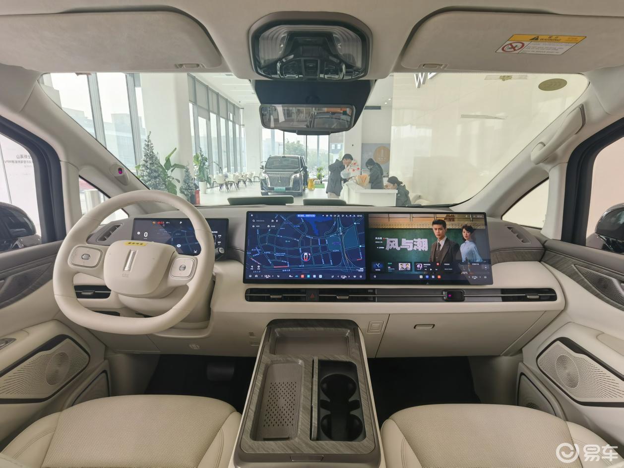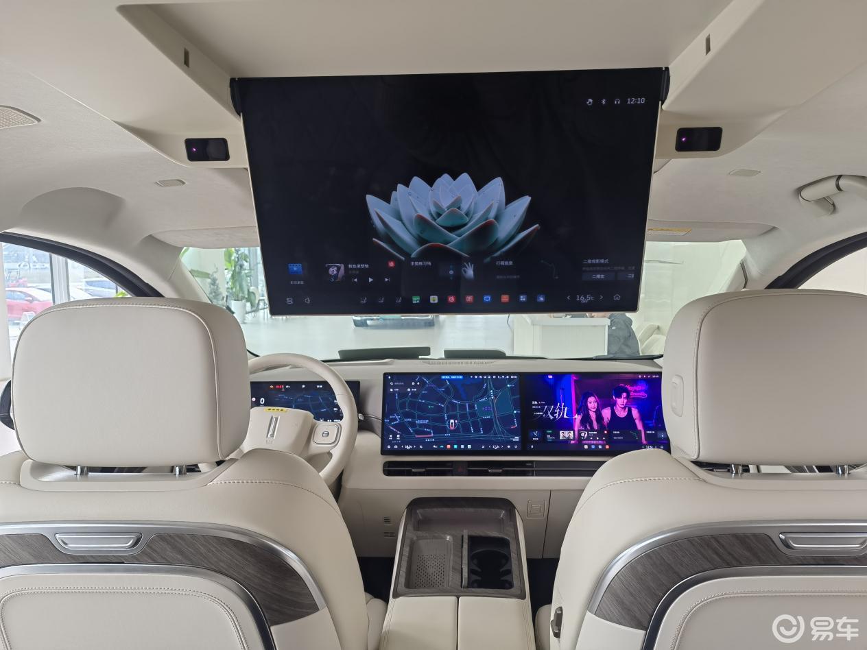 首先,它给你配齐“彩电、沙发和冰箱”。15.6英寸的中控大屏、15.6英寸的副驾娱乐屏、17.3英寸的后排屏幕是上车就有。四块屏的视觉刺激还是挺强,也拉满科技档次感。