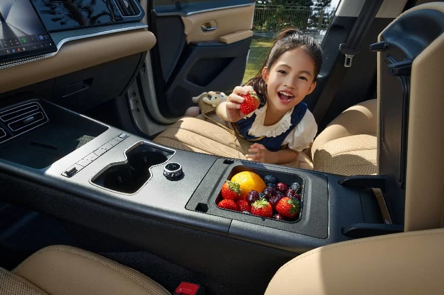 除了续航长,内饰也升级了,在这个价位比亚迪宋就给到了一体式智能冷暖冰箱,夏天可以冻冰棍,冰可乐,冬天热奶热咖啡,还有前排座椅通风加热、感触式广角全景天窗,结合15.6寸中控Pad与沉浸式音乐厅级音响。这个配置在同价位也是遥遥领先的。