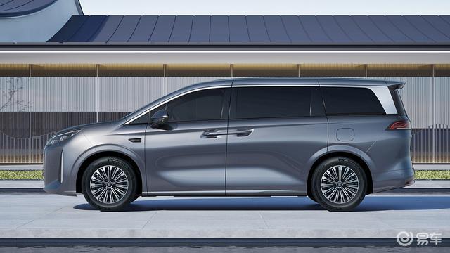侧面修长,新车长宽高分别为5145/1970/1805mm,轴距为3045mm,最小转弯半径5.7米。相比大哥腾势D9,车长短了105mm,宽度增加10mm,高度降低95mm,轴距缩短65mm,其实并没有小多少。