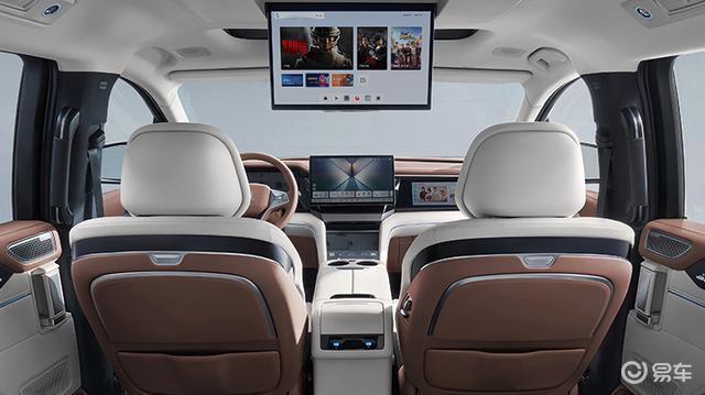 彩电冰箱有,第二排小桌板、冷暖冰箱这些也有,12.3英寸的副驾屏以及15.6英寸的第二排吸顶电视也都有,内部配置可以说拉满了。