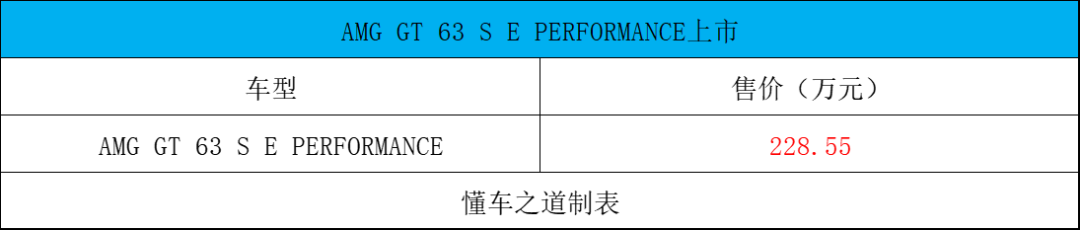 1月6日,全新梅赛德斯AMG GT 63 S E PERFORMANCE正式上市,售价228.55万元。