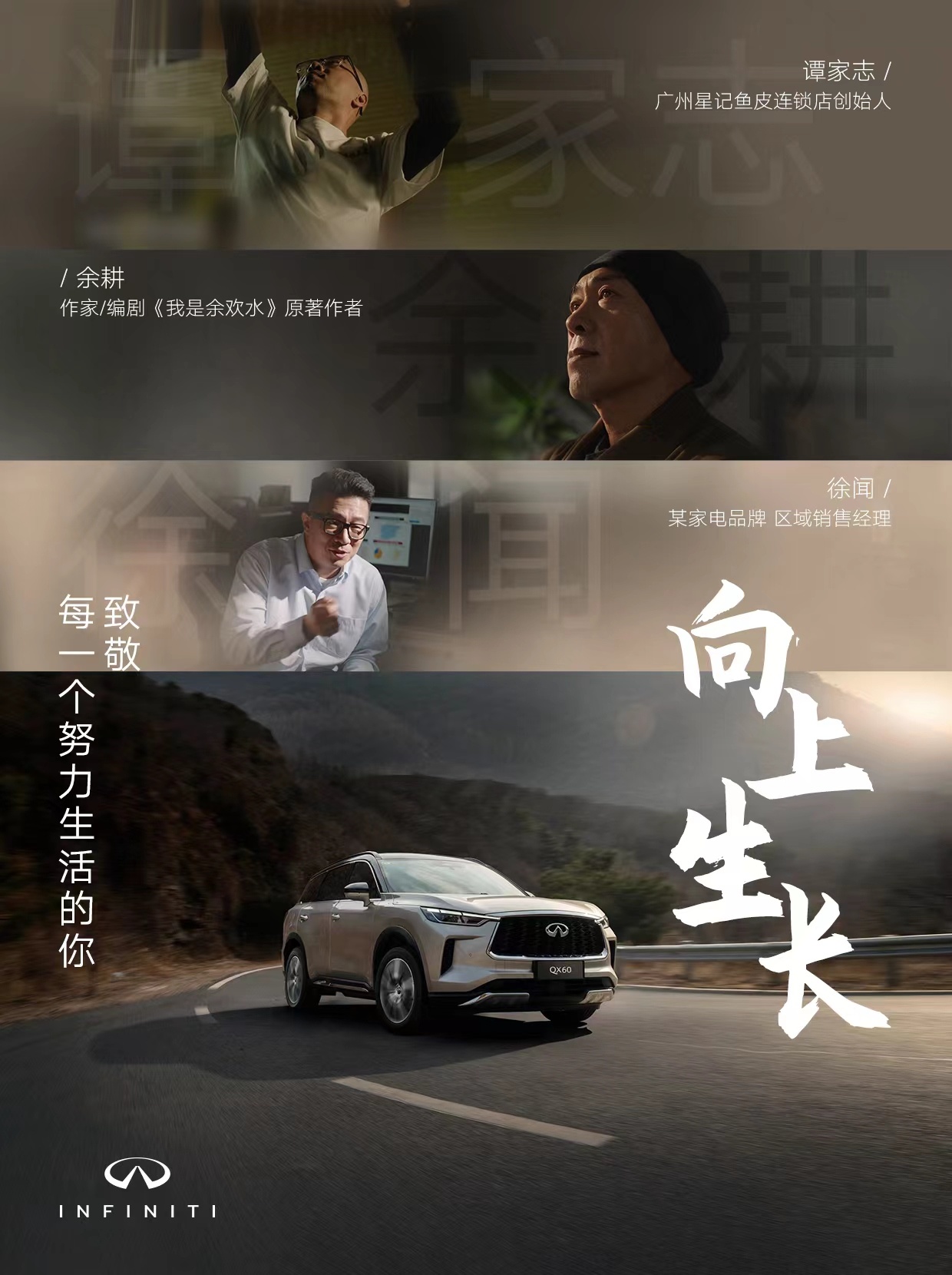 视频中的他们,在面对人生的挑战和困境时,迸发出向上生长的力量。谭家志、余耕和徐闻的故事不仅是中年一代坚守自我、勇敢担当的缩影,更是英菲尼迪品牌在市场变迁中始终深耕中国、优雅向前的生动诠释。