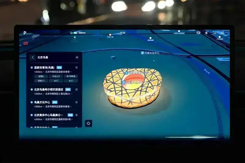 此外,小鹏MONA M03支持3D渲染地图,可展示了鸟巢、水立方、国家大剧院等建筑的白天和夜晚渲染效果。这套地图上可以同时呈现车道级道路信息、三维拟真建筑、周围交通参与者的SR实时感知渲染,附以细腻真实的光影天气变换效果,达到与现实呼应的沉浸氛围。
