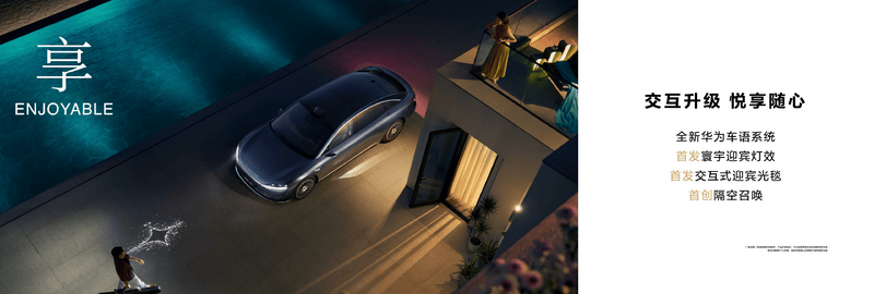 内饰方面,新车采用星环双露台设计,搭载12.3英寸液晶仪表+15.6英寸中控屏以及两侧智能电子外后视镜显示屏连接。新车提供松露棕、白沙杏、琥珀棕和极夜黑等内饰配色,其中松露棕内饰配备同色羊毛地毯。搭载华为自主研发的XPIXEL智慧投影大灯,配寰宇主题迎宾灯效和交互式迎宾光毯。