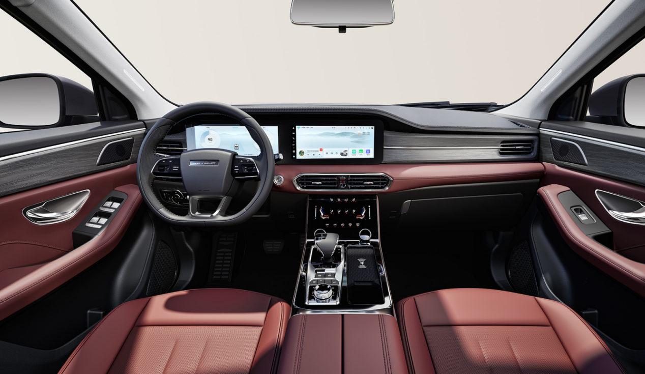 在内饰设计方面,车型新增黑红配色,还搭配了双12.3英寸联屏和9.7英寸空调屏,车机系统也进行了全新升级,可支持华为HiCar互联、网易云、爱奇艺等应用。配置上,2025款捷途X90 PLUS标配LED大灯、全景天窗、仿皮座椅、全景影像等,顶配豪华版相比次顶配精英版贵5000元,但增加了无线充电、座椅加热通风、电动尾门等实用功能。另外,车内的座椅布局灵活,提供5座与7座版本(7座选装加价3000元),满足不同家庭的出行需求。