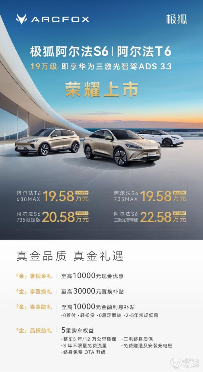 值得一提的是,现在购买用户可享受至高1万元现金优惠或至高3万元置换补贴,更有整车质保5 年/12 万公里(先到为准),终身免费三电质保,3年不限量免费车机流量,免费赠送充电桩及安装,终身免费 OTA 升级等五大购车权益。