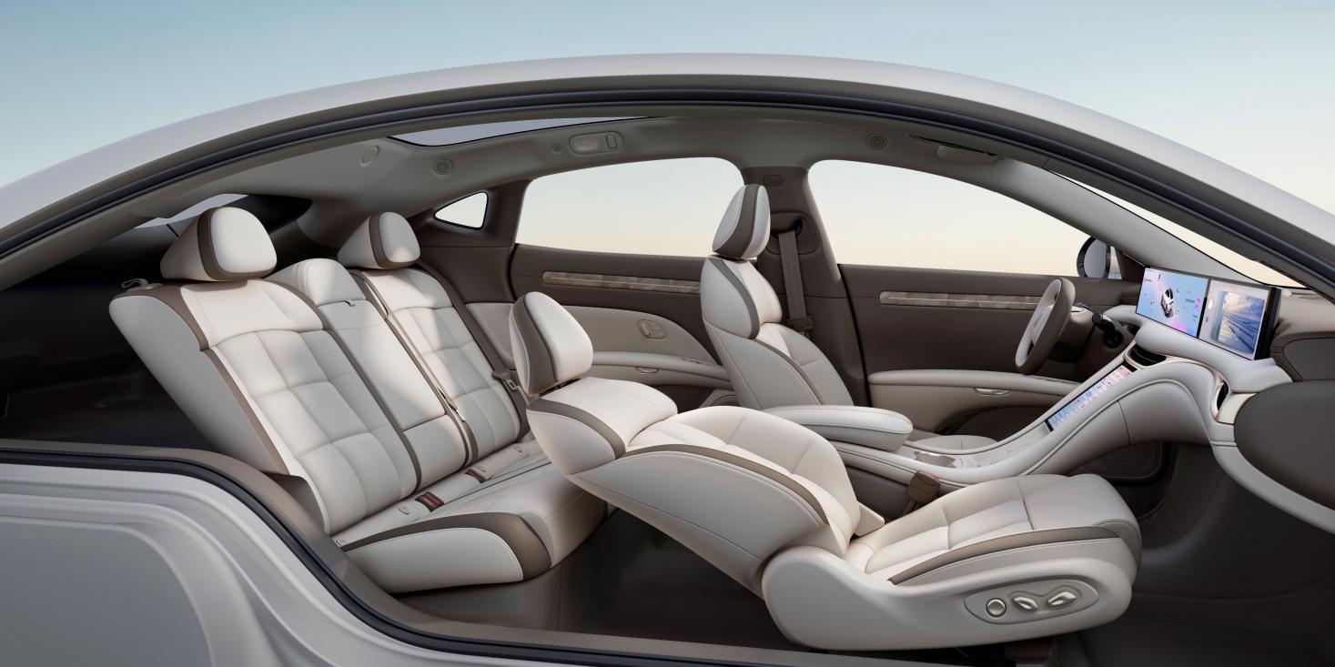 坐进车内,“大地象灰”内饰搭配星漩羽韵高级定制饰件,仿佛置身移动的现代艺术展。全新升级的超广角视野全幅方向盘,既带来了半幅的通透视野,又有全幅的握感,两全其美。此外,座椅舒适度也拉满。副驾新增太空椅模式,身体享受最放松的感受;POPO Sofa 2.0支持后排11度靠背电动调节,用最舒适的姿势尽情舒展。