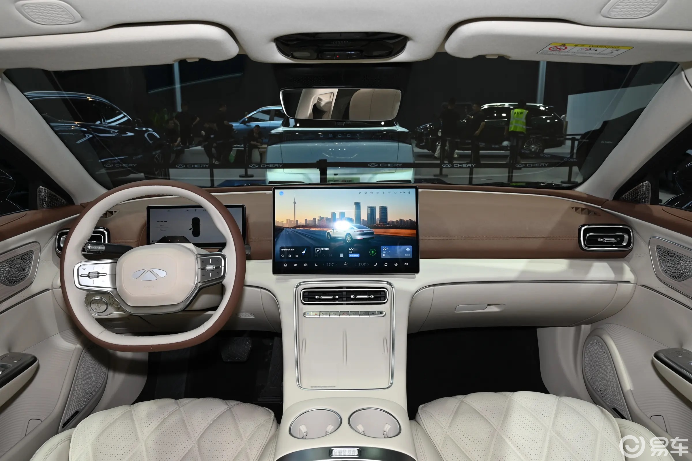 奇瑞风云A9L车内的设计排布简洁规整,仪表屏与大尺寸中控屏均采用悬浮式风格,匹配灵犀智舱2.0及高通骁龙8255芯片,并且引入AI大模型以提升人车交互体验。在此基础上,奇瑞风云A9L配套电子怀挡,中央通道下层预留了开放式储物空间;上层功能区设置有双手机放置槽(左侧集成无线充电功能)等。