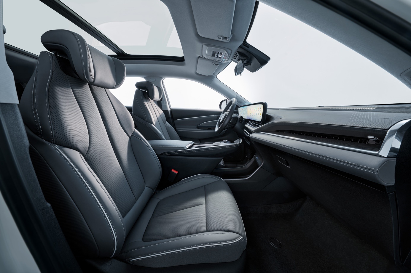 新车搭载专为电动车开发的宽体人机工学座椅,搭配宽体悬浮头枕;后排座椅靠背调节至人体乘坐舒适的27°“黄金仰角”,让乘客获得更舒适的坐姿,久坐也不感疲累。座椅椅垫使用双硬度发泡工艺,型面更贴合人体曲线,具有更好的舒适性和包裹性,不仅长途乘坐倍感轻松,车辆急转弯时也能提供足够的支撑,且长期使用也不会变形塌陷。