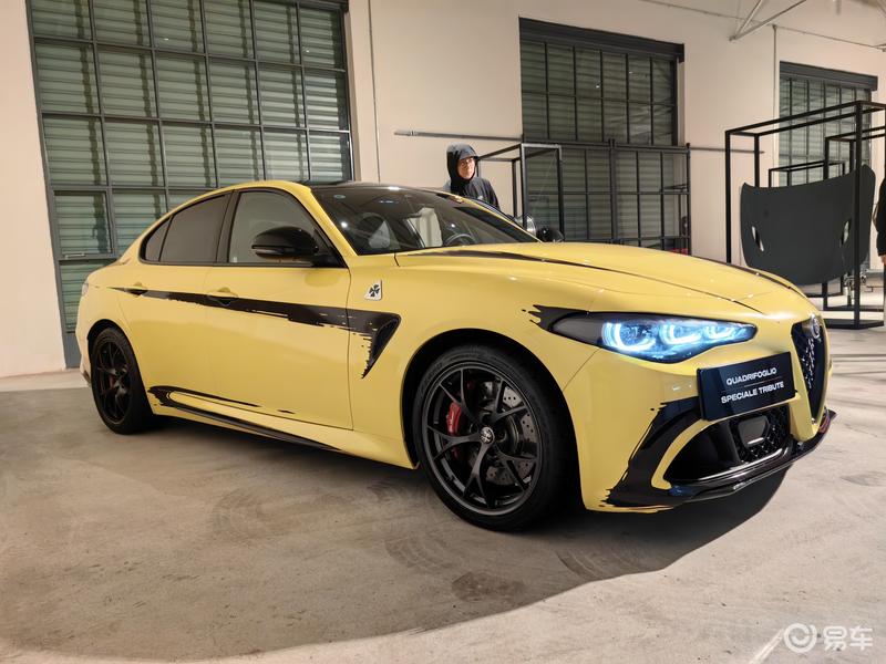 一同展示的还包括了115周年Speciale Tribute四叶草特别致敬版,其创作灵感源于中国书法的飘逸笔触,以流动线条模拟气流划过车身的轨迹,巧妙彰显 Giulia四叶草的车身曲线。明黄色涂装致敬 1969 年 Alfa Romeo 33/2 Coupé Speciale 的经典涂装。这款以超前空气动力学设计颠覆时代的概念车,曾以 “黄色闪电” 之姿成为品牌设计里程碑。