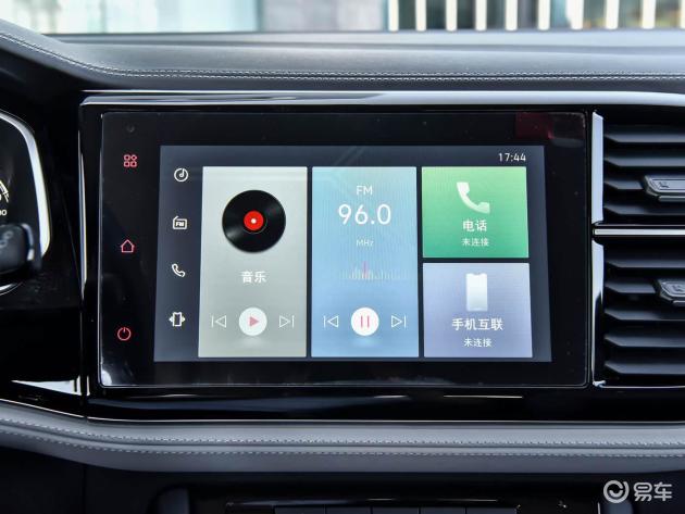 内饰方面,采用了T字形中控台布局设计,功能分区清晰合理。8英寸中控显示屏支持CarPlay手机互联,能够满足日常娱乐和导航需求。中控台表面多采用硬塑材质,并经过纹理处理和银色饰板点缀,提升了视觉质感,但触感略显廉价。