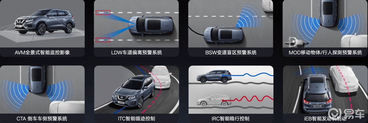 其中,AVM全景式智能监控影像功能,当车辆静止、倒车或以0-20KM/H的速度前进时,通过车身前、后、左、右四个广角摄像头,为车辆提供360度零盲区全景监控影像,实时掌控周围状况,提升行驶安全。