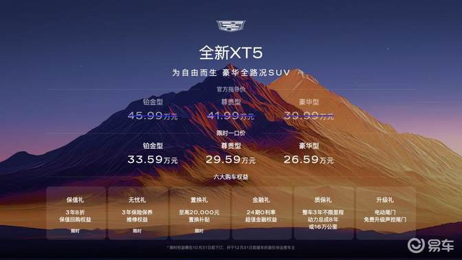 凯迪拉克全新XT5上市,限时一口价26.59万起