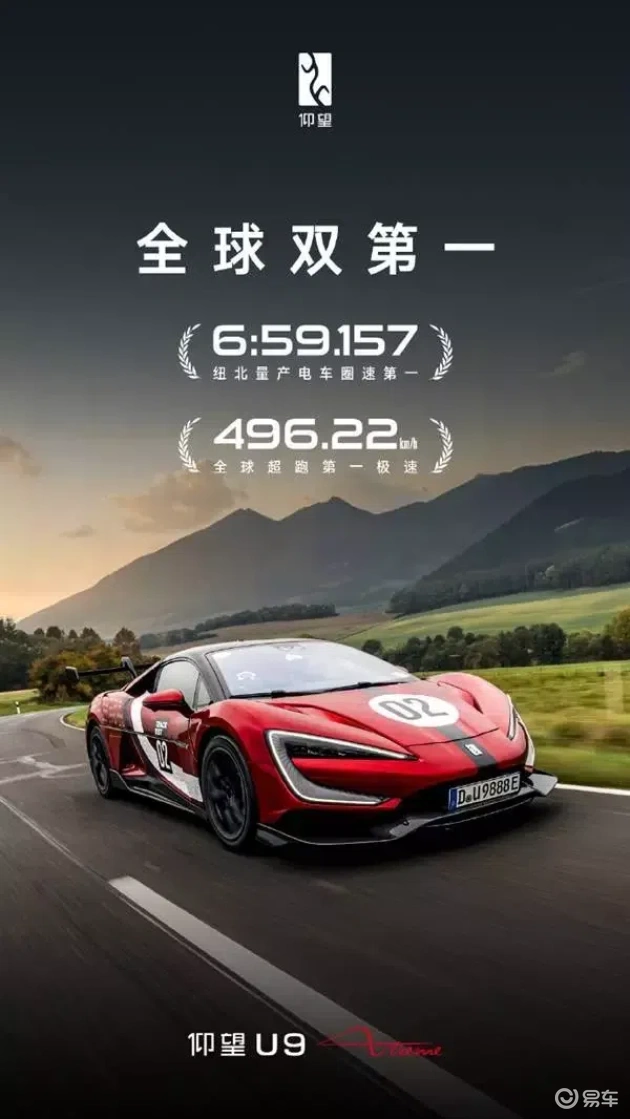 不仅如此,仰望U9Xtreme还以496.22km/h的 speeds 摘得全球超跑最高速度桂冠。