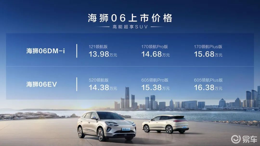海狮06以技术赋能体验,海狮06DM-i搭载比亚迪第五代DM技术,以高效能兼顾长续航,NEDC工况百公里亏电油耗仅3.5L,满油满电综合续航里程1670km,家庭通勤省油省心、长途自驾无惧里程焦虑;海狮06EV基于e平台3.0 Evo打造,提供520km和605km两种续航版本,日常通勤一周一充毫无压力,中短途出游续航扎实够用,全程出行更省心。