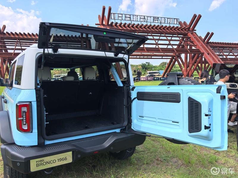 车身侧面,白色细条纹拉花沿袭历史轮廓,从轮拱延伸至车门,既强化了烈马标志性的肩线,又以现代笔触赋予其流动感。为复刻经典传奇,设计师在前翼子板两侧镶嵌了原版斜体镀铬“BRONCO”3D徽标,搭配白色复古盘式轮毂。尾部方面,新车整体设计基本延续在售车型,依然配备了外挂式备胎,尾门同样为侧开方式。