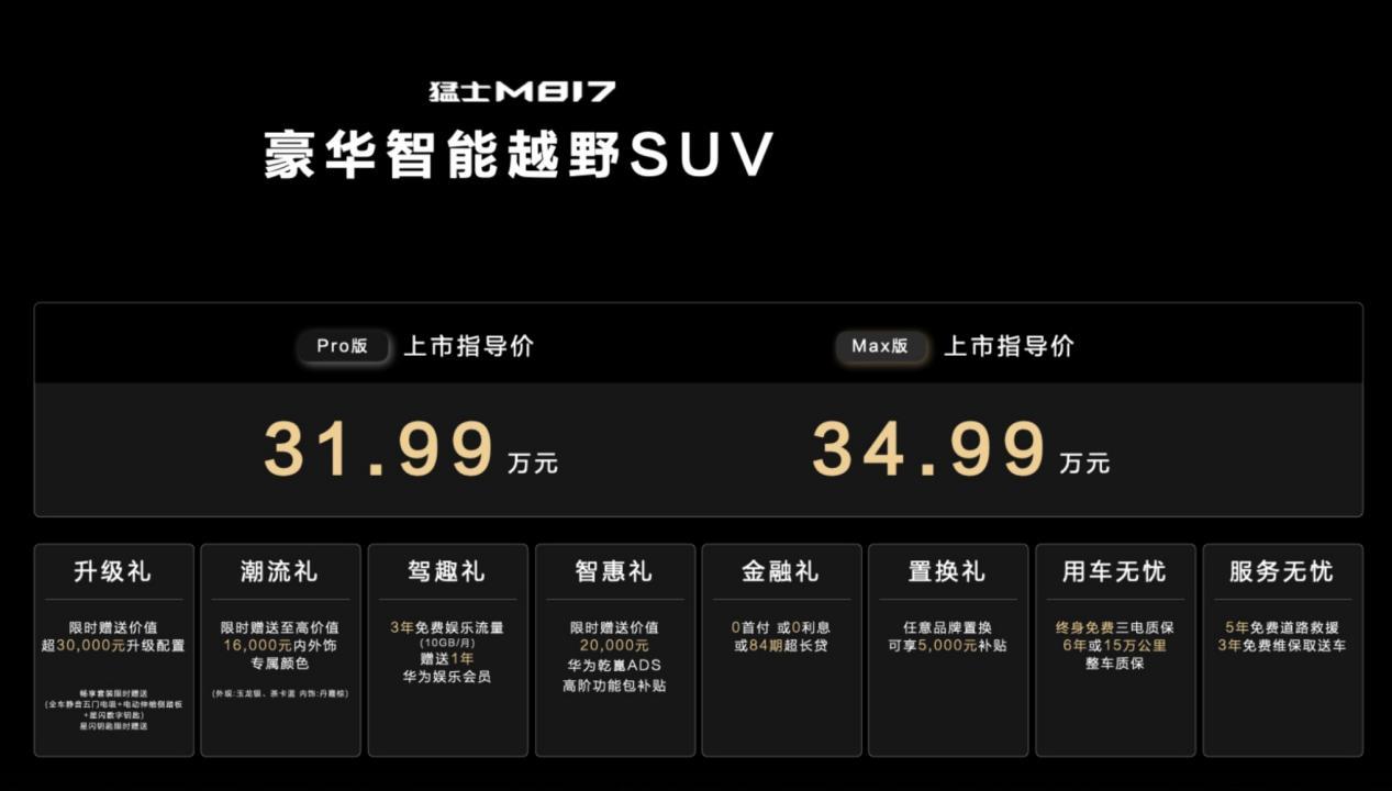 作为“铁血猛士”硬核越野基因与“满血华为”尖端智能科技的集大成者,猛士M817以“全感豪华、全栈华为、全域通达、全维安全、全能拓展”五全实力,打破城野边界,满足“可城可野可远方”的全场景出行需求,定义智能越野价值标杆。