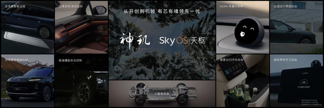 全新 ES8 与 ET9 共享蔚来十年科技创新成果,有芯有魂,拥有目前行业最先进的数字架构和整车全域操作系统。采用中央集成式架构,由蔚来自研的智驾芯片神玑 NX9031 与高通骁龙 8295 芯片组成中央计算平台,具有充沛的算力和极高的集成度。同时,全新 ES8 还全量应用「SkyOS·天枢」整车全域操作系统,在底层打通智能硬件、计算平台、通信与能源系统,实现对车联、车控、智能驾驶、数字座舱、手机应用等全域应用的统一管理与协调,在 AI 时代构建真正的整车全域智能。