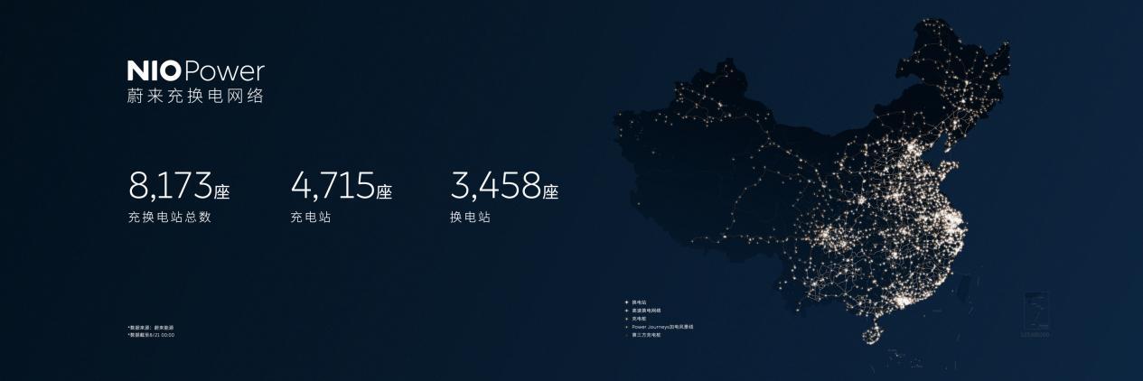 为了让纯电用户也能拥有和油车一样便捷的补能出行体验,蔚来已构建起全球最强的补能网络,截止 8 月 21 日零点,蔚来已在全国范围累计建设 8,173 座充换电站,其中换电站 3,458 座、充电站超 4,715 座,充电站、换电站建设数量行业第一。建成 9 纵 11 横 16 大城市群高速换电网络,全国主要城市均可换电直达。以此为坚实保障,全新 ES8 是行业内补能体验最好、唯一没有续航焦虑的高端纯电大三排 SUV。