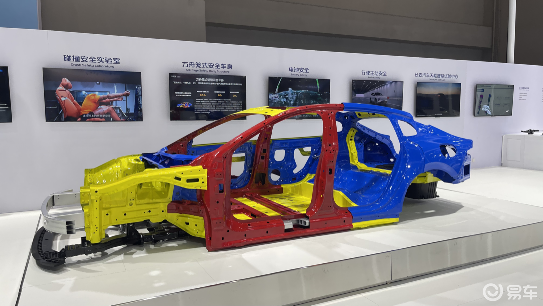 在车身安全上,长安启源A06打造了“十横九纵”方舟笼式钢铝混合车身,高强度钢与铝合金的占比高达82.9%,把整车骨架打造成坚固的防护盾。前方配备双重防撞梁,其中主防撞梁采用3mm厚铝合金,并结合嵌入式+田字格吸能盒,碰撞吸能效率提升70%;后方同样有铝合金防撞横梁与吸能盒,为乘员、电池和车身提供全方位的守护。