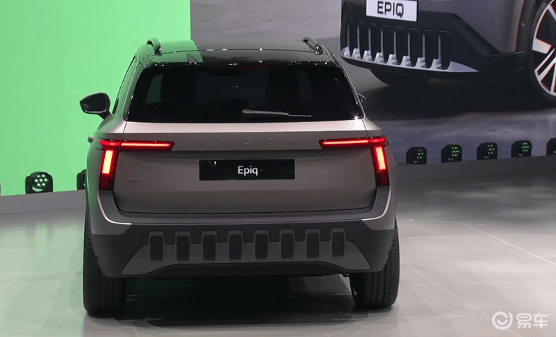 来到车尾,最吸睛的部分当属T形尾灯,为了凸显设计感,新车尾灯一直延伸至车侧,非常与众不同。另外我们能看到,斯柯达Epiq概念车尾门具备极佳的宽度,预计将获得不错的开口效果。