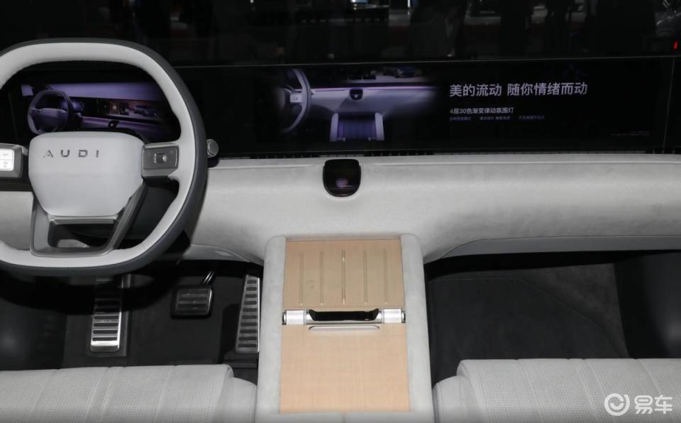打开车门,奥迪 E5 Sportback 采用全新 AUDI OS 操作系统,硬件上搭载高通骁龙 8295 芯片,保障了系统运行的流畅性,同时车内配备贯穿式超清广域屏,由液晶仪表屏、中控屏、副驾娱乐屏组成一体式联屏,搭配两侧流媒体外后视镜显示屏,构建出极具科技氛围的座舱,在多屏联动和连续语音交互的支持下,科技感十足,同时日常使用也很便捷。