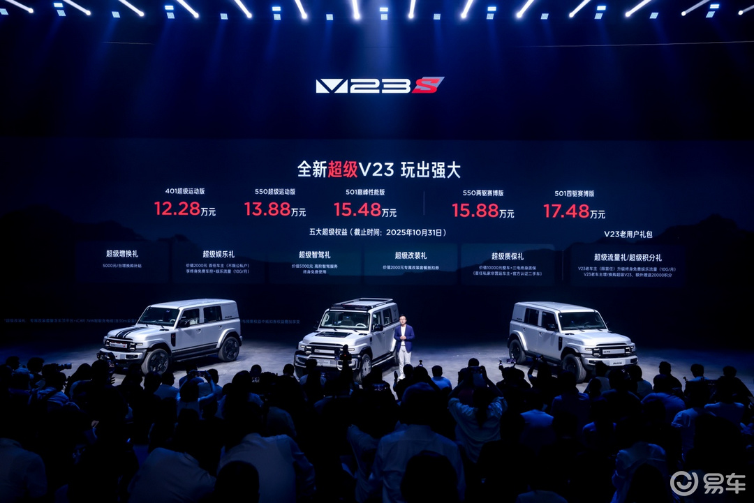 V23自上市以来,凭借极致风格风靡市场,一举成为2025年1-8月新能源方盒子累计销量冠军。全新超级V23更进一步,围绕“超级性能、超级操控、超级越野”等核心维度进行脱胎换骨全面进化,以超级产品极致价值,满足用户极致乐趣。
