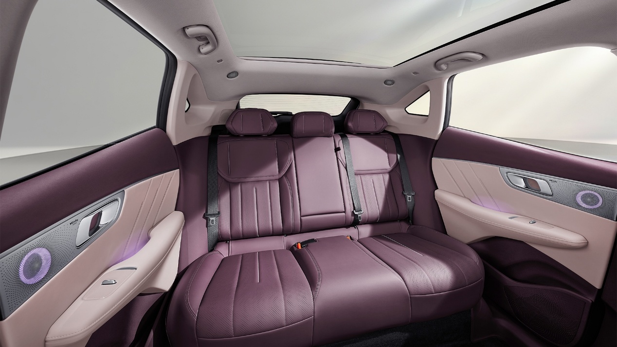 虽然外观运动活力,内在也兼顾豪华与舒适。在乘坐方面,全新深蓝S07采用高级环保皮质座椅,比仿皮和真皮在环保以及亲肤程度上都要更好一些,而且它的主驾电动调节也有16向,副驾更是夸张的达到了14项。这个前排双零重力按摩座椅可是它的核心优势之一,具备加热通风按摩,还有腿托。猜猜看,如果你有个女朋友或者有个老婆,那么当你下班接她的时候,躺在这里一天的疲劳会缓解不少。全新深蓝S07为了营造这种更有质感的内饰氛围,全车足足用了近10.7平米的软质包裹,比很多豪华车还高,仪表盘和上门板更是有超纤绒感麂皮包覆,手一摸就知道这是把钱花在刀刃上了。另外这个内饰颜色也增加了新的选择,这就是暮烟紫颜色,素雅高级。